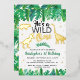 invitaciones de cumpleañosinvitaciones salvajescumpleaños salvajecumpleaños de niñosprimer cumpleañosinvitaciones de 1er cumpleañosjunglafollaje acuarelalámina de foil realdinosaurio