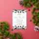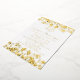 Invitación de damasco de papel de oro romántico decorada en la parte superior e inferior con un majestuoso emblema de nombre dorado en la parte posterior. Texto de estilo clásico y formal y obra de arte dibujada a mano para un conjunto de invitaciones de 50 aniversario único y hermoso.