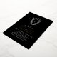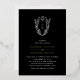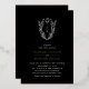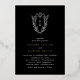 Esta oscura invitación al Relieve metalizado boda clásico de Relieve metalizado negro y dorado de la colección Daphne es perfecta para un boda tradicional. El diseño es sencillo pero sofisticado y cuenta con un elegante y atemporal monograma de escudo vintage con flores y vegetación alrededor de las iniciales de la pareja. Los nombres de la pareja se hacen en un lujoso Relieve metalizado dorado prensado.