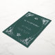Estas glamorosas invitaciones a bodas de Relieve metalizado plateado presentan un giro moderno en el arte clásico del deco. Un marco geométrico y ornamentado adornado con plateado decoran un elegante y rico fondo verde festivo para un espectacular, glamuroso y vintage aspecto boda de los años 20, perfecto para su boda de vacaciones Navidades. Añade tu foto al fondo.