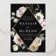 Invitación Con Relieve Metalizado Delicado Boda negro de marco floral de invierno