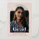 Celebra la alegría y el orgullo de tu graduación de secundaria o universitaria con esta moderna invitación a la tarjeta de fotos, con verdadero Relieve metalizado. Personalizable completo con tu propia foto de graduación.