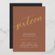 Celebra su cumpleaños con estas invitaciones de la fiesta de cumpleaños número 16 de la moda, que incluyen "dieciséis" en letras de guión esbozadas a mano de Relieve metalizado oro moderno. Personalice con los detalles de su fiesta debajo. Una elección de lujo inolvidable para fabulosas celebraciones de cumpleaños 16.