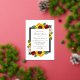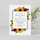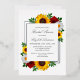 El diseño presenta elegantes girasoles, rosas y margaritas con una paleta de colores dorados amarillos, rojos y blancos de otoño. El diseño también cuenta con un marco de Relieve metalizado real. Puede cambiar el color de fondo en la parte delantera y de vuelta al color de su elección o dejar ambos en blanco.