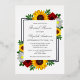 El diseño presenta elegantes girasoles, rosas y margaritas con una paleta de colores dorados amarillos, rojos y blancos de otoño. El diseño también cuenta con un marco de Relieve metalizado real. Puede cambiar el color de fondo en la parte delantera y de vuelta al color de su elección o dejar ambos en blanco.