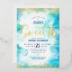 Invitación Con Relieve Metalizado Dulce 16 Script Turquesa acuarela Real Gold