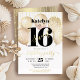 "Feliz dulce 16". Envíe esta impresionante, simple, festiva, moderna, personalizada invitación real a una fiesta de Relieve metalizado de oro para un evento que recordar. Tipografía negrita, gráfica, negra y escritura manuscrita de Relieve metalizado oro real superponen globos de oro falsos y luces de cuerda brillantes doradas falsas en un sofisticado fondo blanco. Personalice el texto del personalizado con el nombre de su hija, así como otros detalles del fiesta. Ideal para la flamante moda que ama el moderno glam y garantiza diversión con estilo a su fiesta especial. Simplemente teclee el nombre del chica de cumpleaños, el año de cumpleaños y la información del lugar de fiesta y puede personalizar fácilmente esta invitación de cumpleaños de Relieve metalizado de oro. Por favor, envíame cualquier pregunta o petición.