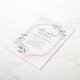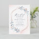Moderna invitación a la ducha de novia con decoración rústica de color azul polvoriento color agua vegetación botánica con hojas de Relieve metalizado oro rosa y marco geométrico, sencillo y elegante. Ver todas las piezas coincidentes de la colección