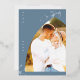 Dusty Blue Arch Bohemian Real Relieve metalizado plateado Foto Mínima Leaf Guardar la Tarjeta de Fecha con Elegante Caligrafía.
