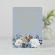 Invitación Con Relieve Metalizado Dusty Blue Floral Blue Floral Gold Purpurina Dulce
