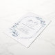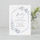 Moderna invitación a bañarse en una ducha de bebé con un diseño rústico de color azul polvoriento color agua, vegetación botánica, con hojas de Relieve metalizado oro rosa real y marco geométrico, sencillo y elegante. Ver todas las piezas coincidentes de la colección