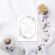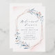 Moderno ensayo de vegetación, invitación a cenar con un diseño rústico de color azul polvoriento de color agua, vegetación botánica, con hojas de Relieve metalizado de oro rosa y marco geométrico, sencillo y elegante. Ver todas las piezas coincidentes de la colección