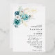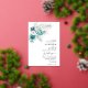 Invitación a una boda en un entorno verde esmeralda con flores, capullos y hojas de eucalipto blancas y verde esmeralda. Personalice los detalles de su boda y encuentre diseños coincidentes en mi tienda "DreamHut".