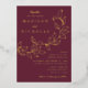 Invitaciones botánicas de boda con sus nombres y detalles bodas en letras de Relieve metalizado dorado divididas por una vid de hojas esbozadas con un fondo de merlot. Las elegantes invitaciones a bodas de Relieve metalizado dorado se coordinan con nuestra colección de bodas de las hojas de cascadas.