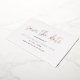Tipografía moderna Guardar la tarjeta de fecha con un diseño simple con "guardar la fecha" y sus nombres en un elegante tipo de letra de guión, impreso en Relieve metalizado de oro rosa real. Moda y diseño elegante para anunciar la fecha de su próximo boda.