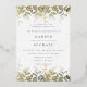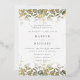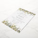 Elegante invitación a bodas botánicas de vegetación con follaje acuático y hojas de Relieve metalizado dorado.