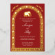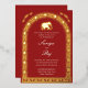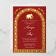 Invitación Con Relieve Metalizado Elefante dorado y Boda indio Lotus Flower