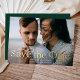 Anuncie a su boda con estilo con este elegante Relieve metalizado guardar las tarjetas de fecha. El diseño muestra tu foto horizontal de purga completa con "Save the Date" en letras de Relieve metalizado dorado. Personalice la foto moderna y guarde la tarjeta de fecha con sus nombres, fecha de boda, ubicación del boda y detalles de la invitación. La parte posterior de la tarjeta contiene detalles adicionales, como el sitio web de su boda con letras blancas en un fondo verde de cazador sólido.