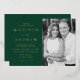 Invitación a una boda fotográfica moderna que incluye los detalles de su boda a la izquierda del diseño con letras de Relieve metalizado dorado con acentos caligráficos en un fondo verde. Personalice la parte delantera de la invitación añadiendo sus nombres, detalles del boda y fotos verticales de compromiso. La parte posterior de la invitación proporciona espacio para texto y fotos adicionales. Diseñado para coordinar con nuestra colección de bodas de Relieve metalizado Modern Elegance.