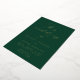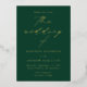 Invitación minimalista y moderna a la boda con los detalles de su boda con "el boda de" en un elegante guión de caligrafía de Relieve metalizado dorado sobre un fondo verde. La invitación se invierte para mostrar tu foto de compromiso vertical de sangre completa. Diseñado para coordinar con nuestra colección de bodas Modern Elegance.