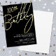 The party details are arranged neatly at the bottom left in classic white serif fonts, keeping the layout minimal and refined. The back side is solid white for a clean, polished finish. All colors and foil options can be customized to match your personal style or party theme.