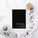 The party details are arranged neatly at the bottom left in classic white serif fonts, keeping the layout minimal and refined. The back side is solid white for a clean, polished finish. All colors and foil options can be customized to match your personal style or party theme.