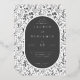 This elegant wedding invitation features a classic rectangular layout with a symmetrical design, framed by intricate black botanical illustrations on a white background. The central oval in dark gray highlights the event details in a sophisticated serif font, creating a formal and refined mood. The monochromatic color palette enhances the timeless appeal, making it perfect for a traditional or garden-themed celebration. Customizable text fields allow personalization while maintaining an overall sense of elegance and sophistication. Ideal for couples seeking a blend of nature-inspired elements and understated luxury.