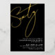The party details are arranged neatly at the bottom left in classic white serif fonts, keeping the layout minimal and refined. The back side is solid white for a clean, polished finish. All colors and foil options can be customized to match your personal style or party theme.