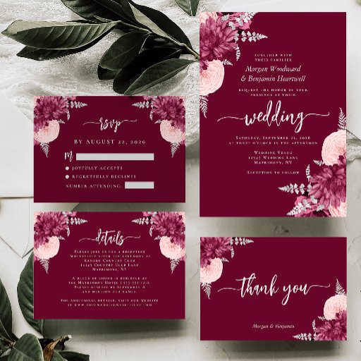 Burgundy Blush Floral Script Wedding SuiteDiseñado por Akhates Designs