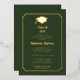 The rich green background paired with shimmering gold foil creates a formal, upscale aesthetic ideal for evening celebrations, private club receptions, or milestone graduation gatherings. Easily personalize with the graduate’s name, school, degree, event details, and RSVP information to create a polished, memorable keepsake invitation.