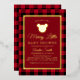 Invitación Con Relieve Metalizado Elegant Gold Red Plaid Merry Little Baby Shower