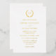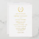 This elegant foil wedding invitation template features a botanical wreath at the top for your monogram, along with elegant script and serif fonts to highlight your wonderful wedding details. Choose from a variety of foil colors for the text and wreath. Personalize this classic invitation design with your names and wedding information.