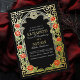 with vines and red roses, and gold accents against a black background. Matching Items in our shop for a complete party theme. Please note that the gold on the back of the invitation is NOT real foil and is printed in flat colors