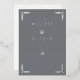 This elegant wedding invitation features a sophisticated rectangular layout with a muted gray background, framed by intricate floral motifs at each corner. The design employs a clean serif font for the customizable text, arranged in a balanced, hierarchical manner to highlight the names and event details. With its timeless color palette of grays and whites, this invitation exudes formality and refinement, perfect for celebrating a significant life moment like a wedding.