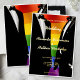 Make a statement with this bold, modern gay wedding invitation. Two grooms in classic black tuxedos set against a vibrant rainbow Pride flag, with all wedding details rendered in luxurious gold foil typography throughout. Fully customizable with your names, ceremony date, time, venue, and reception details.