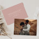 Elegante tarjeta de agradecimiento de bodas con tu foto boda horizontal de sangre completa con "Amor y Gracias" en letras de Relieve metalizado de oro rosa. Personalice la tarjeta de agradecimiento de fotos moderna con su nombre. La parte posterior de la tarjeta de agradecimiento del boda del Relieve metalizado de oro rosa muestra su mensaje personalizado con letras blancas con un fondo rosa sólido y polvoriento.