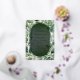 Elegante luz de fondo exuberante a marco de hojas de color verde oscuro, emparejado con lujoso Relieve metalizado de plata real, para crear un diseño único y atemporal que ofrece una hermosa apariencia formal para su memorable ocasión de aniversario.