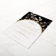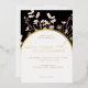 La elegante invitación al Relieve metalizado dorado Boda del Arco de Flor Silvestre combina elementos delicados para un aspecto sofisticado, un fondo negro con acentos de Relieve metalizado dorado. Un arco elegante de flores silvestres enmarca el texto. Perfecto para una celebración de bodas tierna y elegante