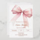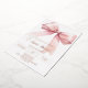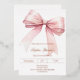 Un fondo blanco, decorado con un gran arco rosa. Personalice y agregue un nombre y detalles del fiesta. Rosa de texto de Relieve metalizado de oro.