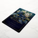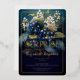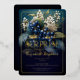 Elegante estilo barroco oscuro y florido azul celeste y blanco diseño floral "SURPRISE" de la fiesta de cumpleaños. Cuenta con una elegante lirio blanco de flores del valle y flores de espino dorsal azul oscuro con un exuberante vegetación verde sobre un fondo multiconal verde azulado a azul oscuro. Si a esto le sumamos el lujo de un verdadero Relieve metalizado de oro, tendrá una celebración de cumpleaños que es a la vez sofisticada y atemporal, pero también espectacularmente moderna.