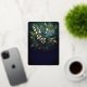 Elegante estilo barroco oscuro y florido azul celeste y blanco diseño floral "SURPRISE" de la fiesta de cumpleaños. Cuenta con una elegante lirio blanco de flores del valle y flores de espino dorsal azul oscuro con un exuberante vegetación verde sobre un fondo multiconal verde azulado a azul oscuro. Si a esto le sumamos el lujo de un verdadero Relieve metalizado de oro, tendrá una celebración de cumpleaños que es a la vez sofisticada y atemporal, pero también espectacularmente moderna.