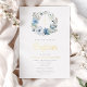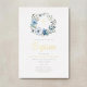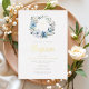 Invitación Con Relieve Metalizado Elegante bautismo religioso floral azul