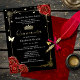 Invitación Con Relieve Metalizado Elegante Black Quinceanera Red Rose Real Gold