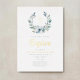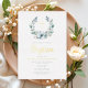 Invitación Con Relieve Metalizado Elegante Blue Wreath Religiosa Cross Boy Baptism