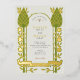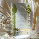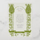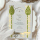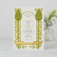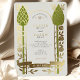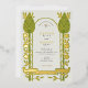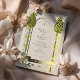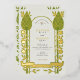Haga una gran declaración con esta exquisita invitación a la boda, profundamente inspirada en la elegancia de los movimientos Art Nouveau y Arts & Crafts. Este diseño de estilo muy elegante cuenta con una arcada simétrica creada a partir de botánicos de color verde oliva, todo muy bien delineado en un lujoso Relieve metalizado de oro falso. Delicados rosas de oro trepan los majestuosos tallos, añadiendo un toque de romanticismo. Los detalles de su boda se enmarcan con elegancia en este arco arquitectónico, con un fondo sofisticado y gris suave. Una prominente bandera dorada en la parte inferior muestra elegantemente su fecha boda, añadiendo un toque final de regal. Esta invitación, con su paleta de colores refinada y su estilo artístico único, es perfecta para una celebración boda formal, vintage o de estilo único.