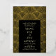 Elegante invitación de boda china de oro negro con un patrón geométrico asiático.