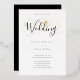 Una elegante invitación a la boda con ilustraciones florales de Relieve metalizado dorado con texto negro. Esta encantadora invitación tiene un fondo blanco en la parte delantera y una declaración negra, fondo en la parte posterior. Simplemente personalizar esta invitación, añádala a tu carrito, y ten una maravillosa celebración boda. Elegante floral dorado blanco Boda negro Relieve metalizado Invitación vacaciones diseño | ©Melissa Patton - Diseñador