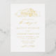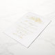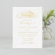 Invitaciones rústicas de boda con un ilustracion de Relieve metalizado dorado esbozado de un granero que se muestra en la parte superior de la invitación sobre un fondo blanco. Las invitaciones a bodas de granero presentan elementos elegantes de caligrafía de Relieve metalizado dorado a lo largo de todo el diseño. Personaliza las invitaciones para la boda de Relieve metalizado dorado con tus nombres y detalles de boda.