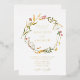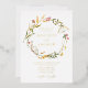 Elegantes invitaciones a bodas de flores silvestres con nombres mostrados en letras de Relieve metalizado dorado rodeadas de una corona de follaje verde y flores en tonos dorados, amarillos, rosados y morados. Personalice las invitaciones florales de bodas de verano con los detalles de su boda a continuación. Las invitaciones a las flores silvestres de Relieve metalizado dorado son perfectas para los bodas de primavera y verano.