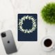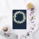 Arándanos de nieve pintados a mano y tallos de eucalipto dispuestos en una bella corona sobre un oscuro fondo marino. El texto y los puntos dispersos en la parte delantera de la tarjeta son pulsados por Relieve metalizado. Todo el texto es completamente editable. La parte posterior presenta una dispersión opcional de puntos. Vea esta colección en mi tienda para invitaciones con opciones de texto alternativas, colores diferentes y para elementos de coordinación.